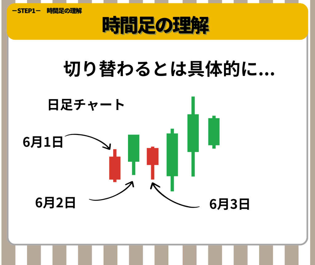 ローソク足を完全に理解するには、「時間足」の理解も必須なので次のSTEPで時間足を解説していきます。