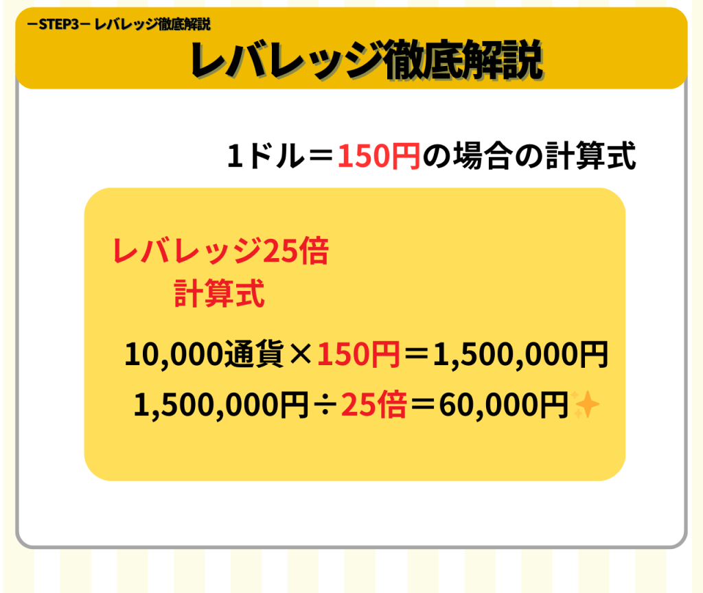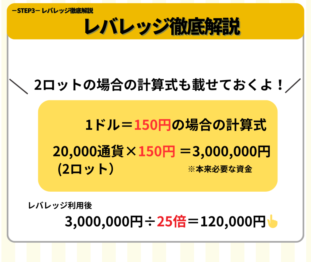 ここからはレバレッジを使った計算式を解説していきます!
