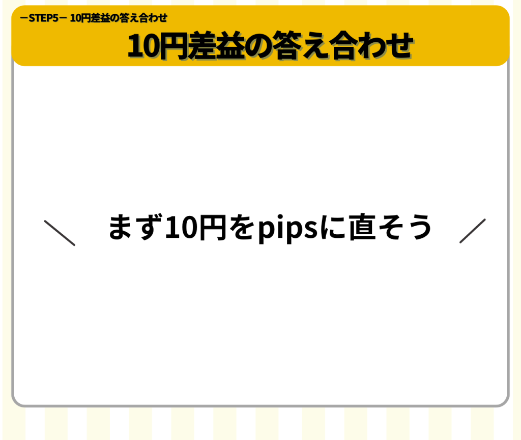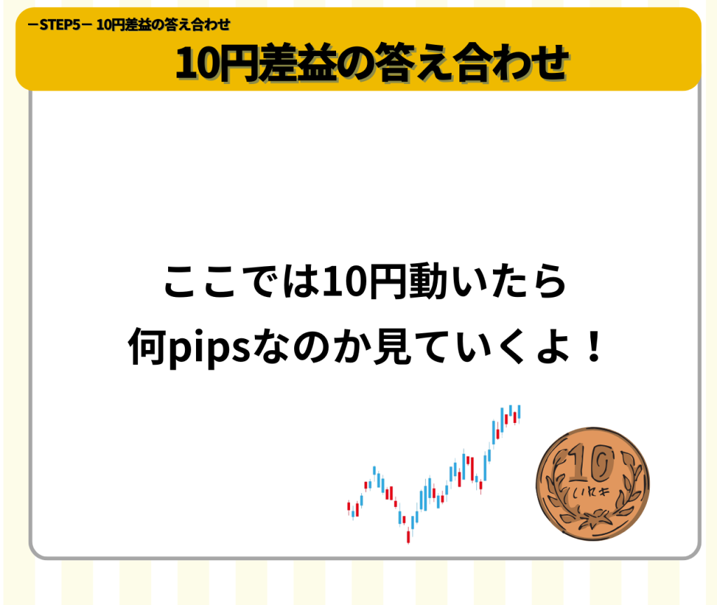 PIPS(ピプス)の解説が終わったので、本題の10円差益の答え合わせをしていきます。