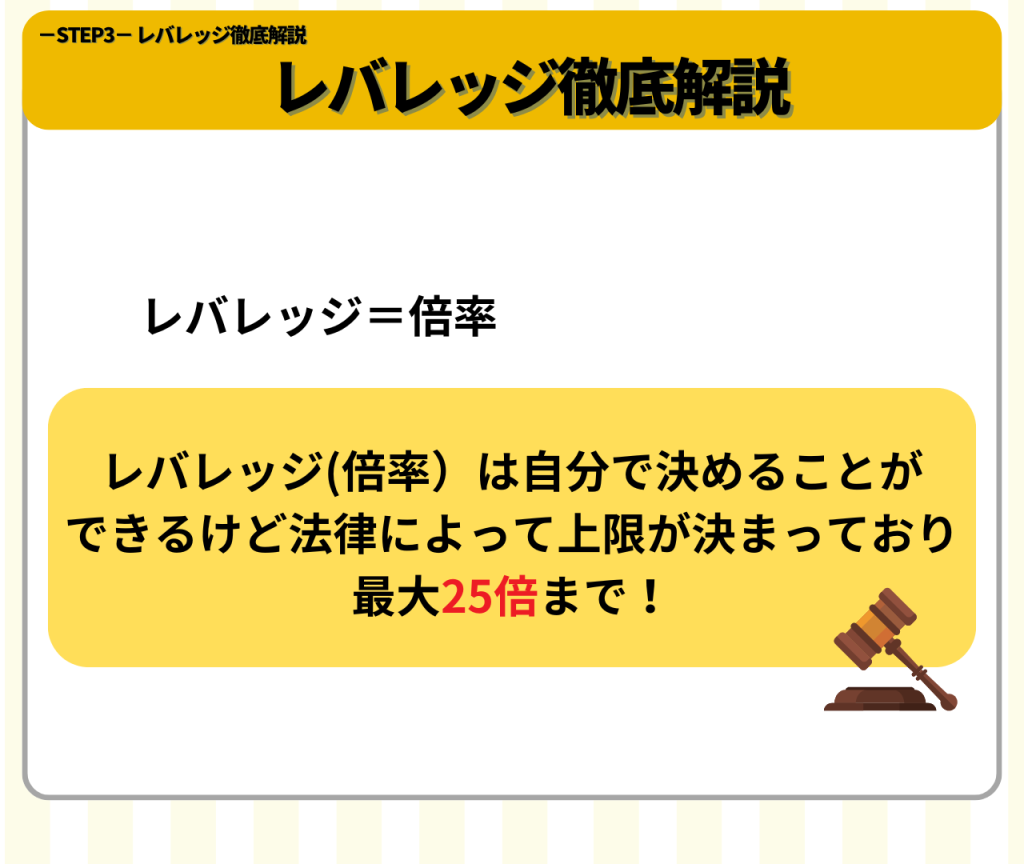レバレッジとは、自分が持っている資金よりも大きな額で取引できる制度です。