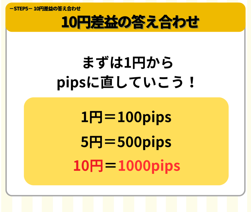 10円=1000pipsということがわかったね!